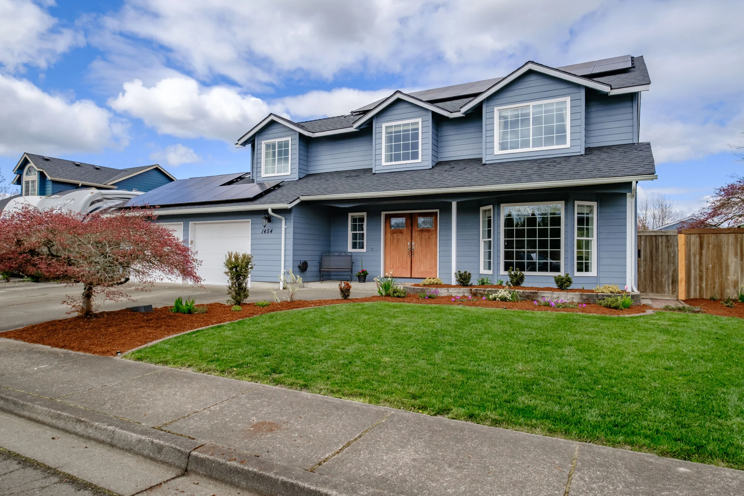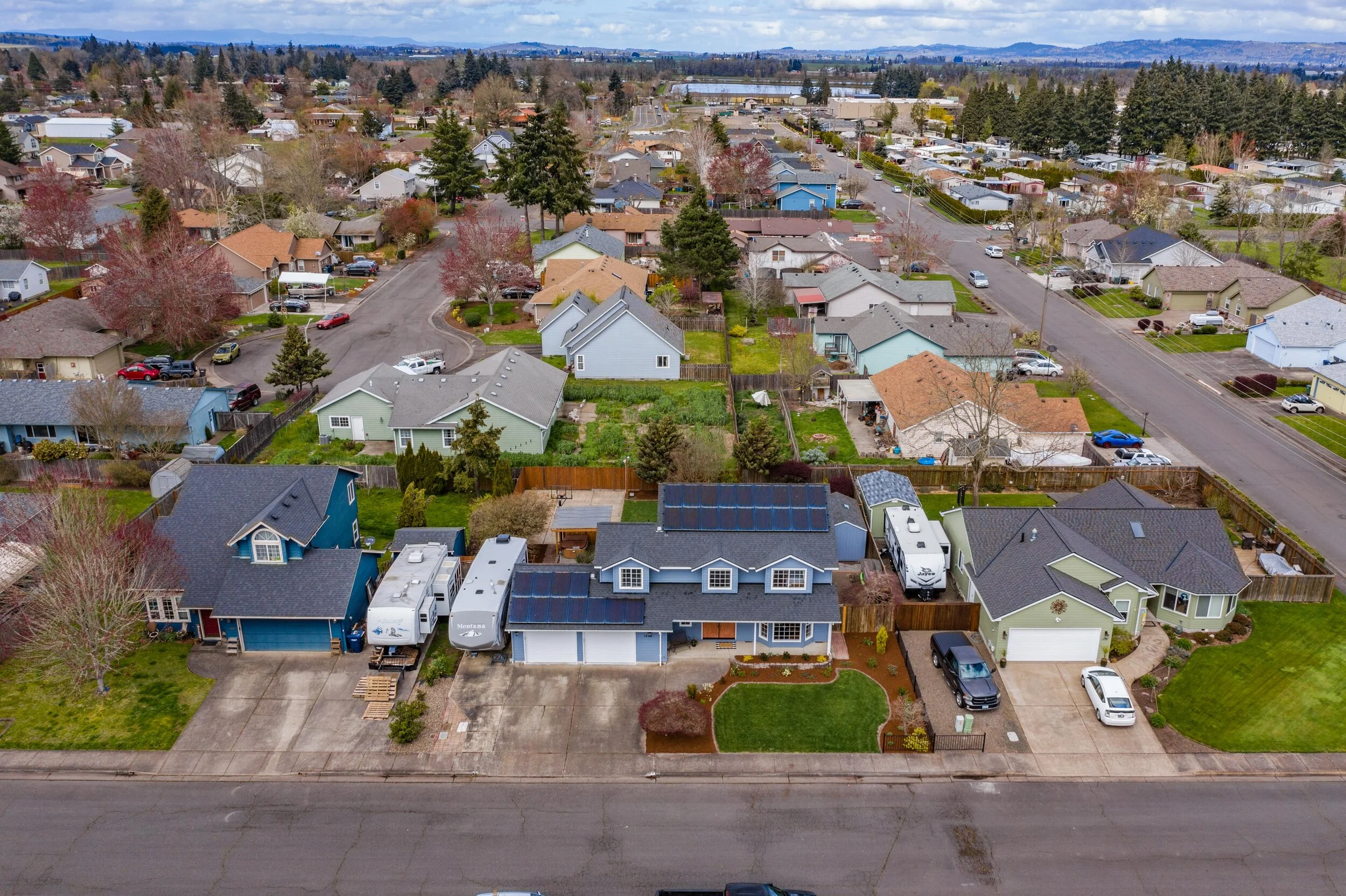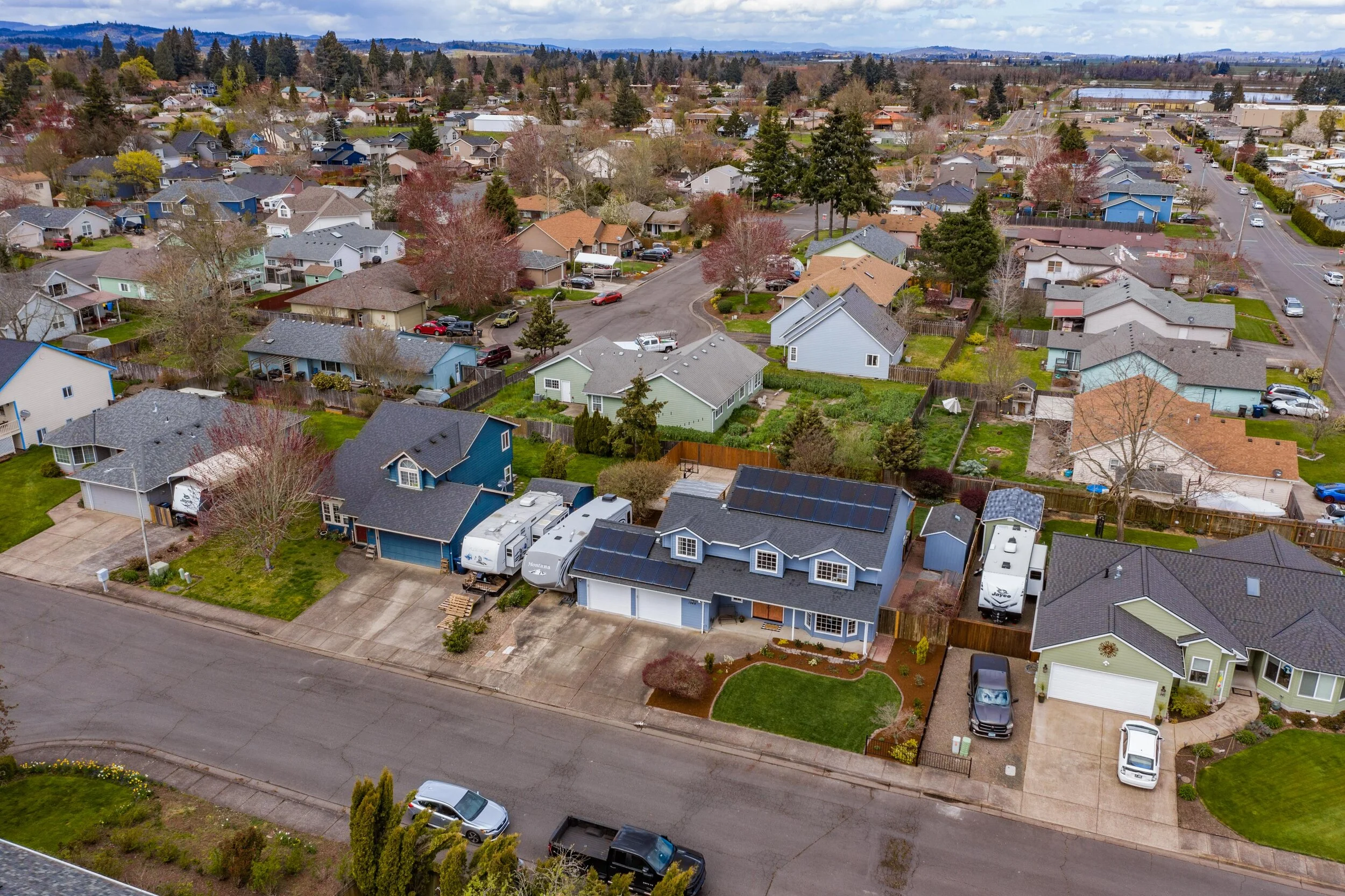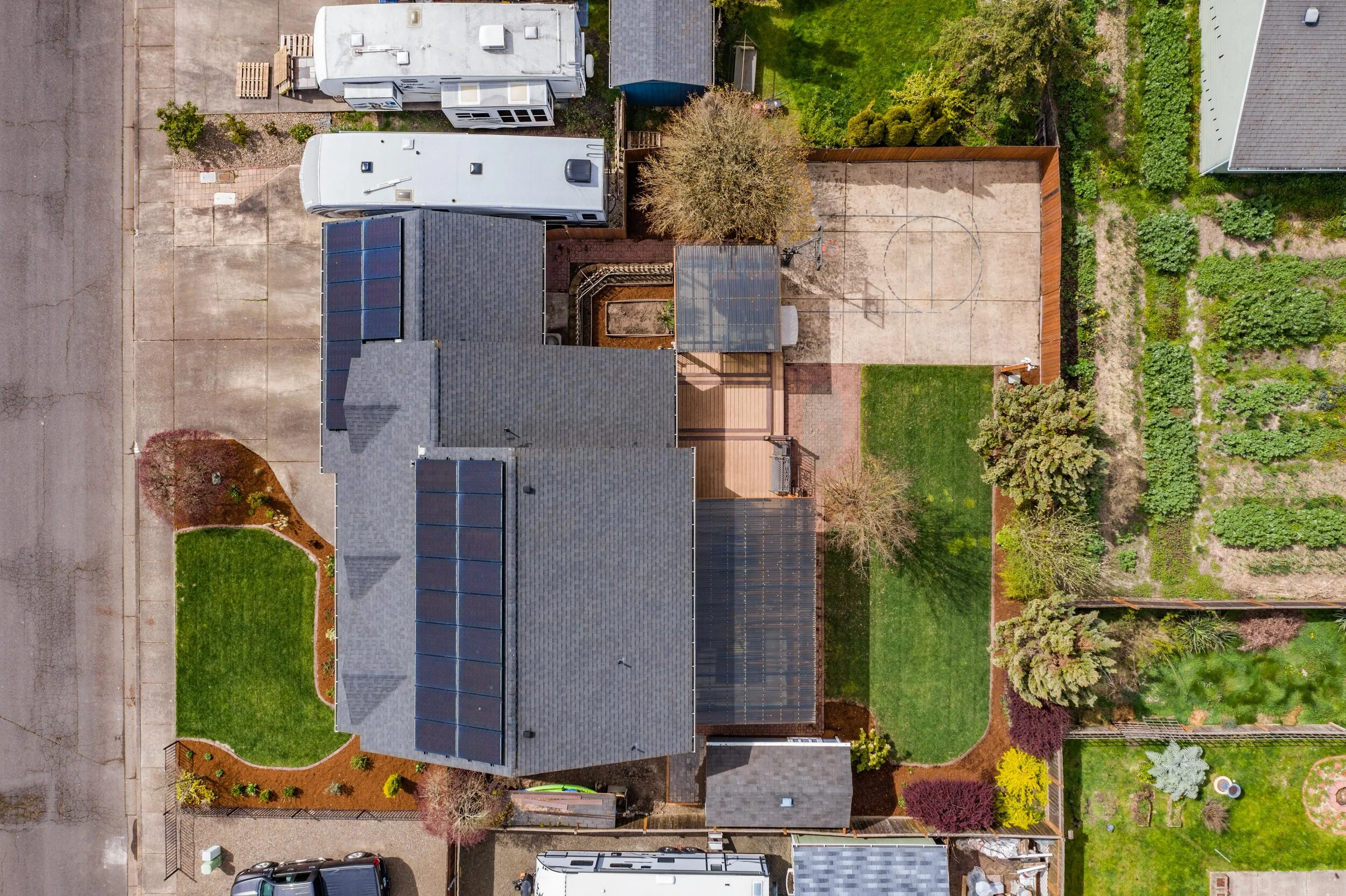 Upstairs, you will find four spacious bedrooms, with the option to connect the middle two rooms into one large suite. Master bedroom and ensuite reveal great natural light, dual closets, a new shower, and plenty of space to share. Upstairs hall bathroom and half bathroom next to foyer showcase marble countertops and elegant tile. Moving to the backyard there is more than 40 feet of deck space lending to an abundance of year-round outdoor living space. Other features include pergola for hot tub and BBQ, raised garden beds, underground sprinklers, half basketball court, 16x8 shed and wood storage! There is plenty of space to move, work and play in this home not to mention it is in a fantastic neighborhood. Some other updates include new interior and exterior paint, landscaping, new windows, 50-year roof, refinished cabinets, upgraded stairwell rails, solar panels, and a 1200 bottle temperature regulated wine cellar in the garage! Don’t forget there is RV parking too. Finally, this home is just minutes from Madrona Park, Western Oregon University, shopping, downtown, and HWY 99W for easy commute. Do not wait on this one!