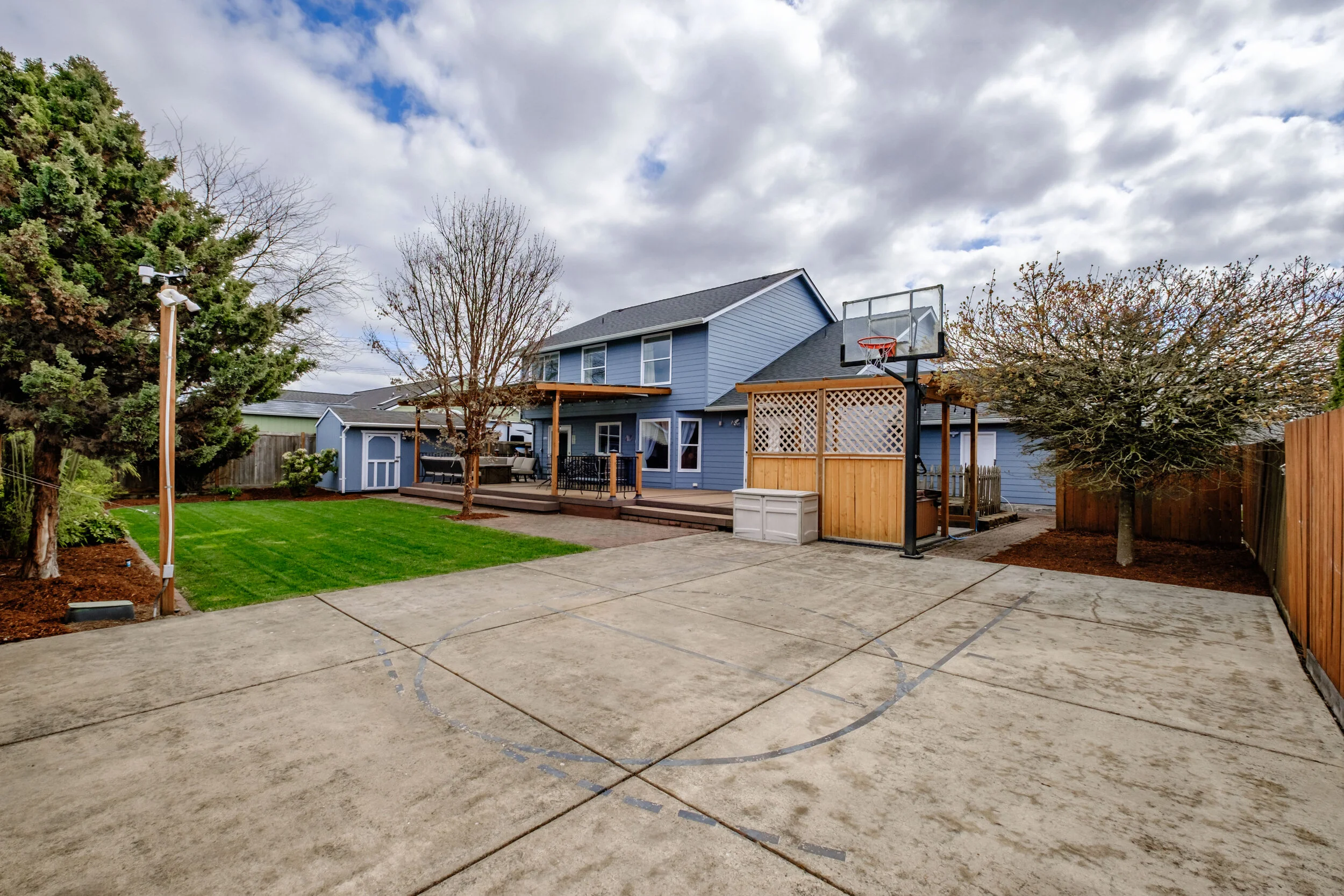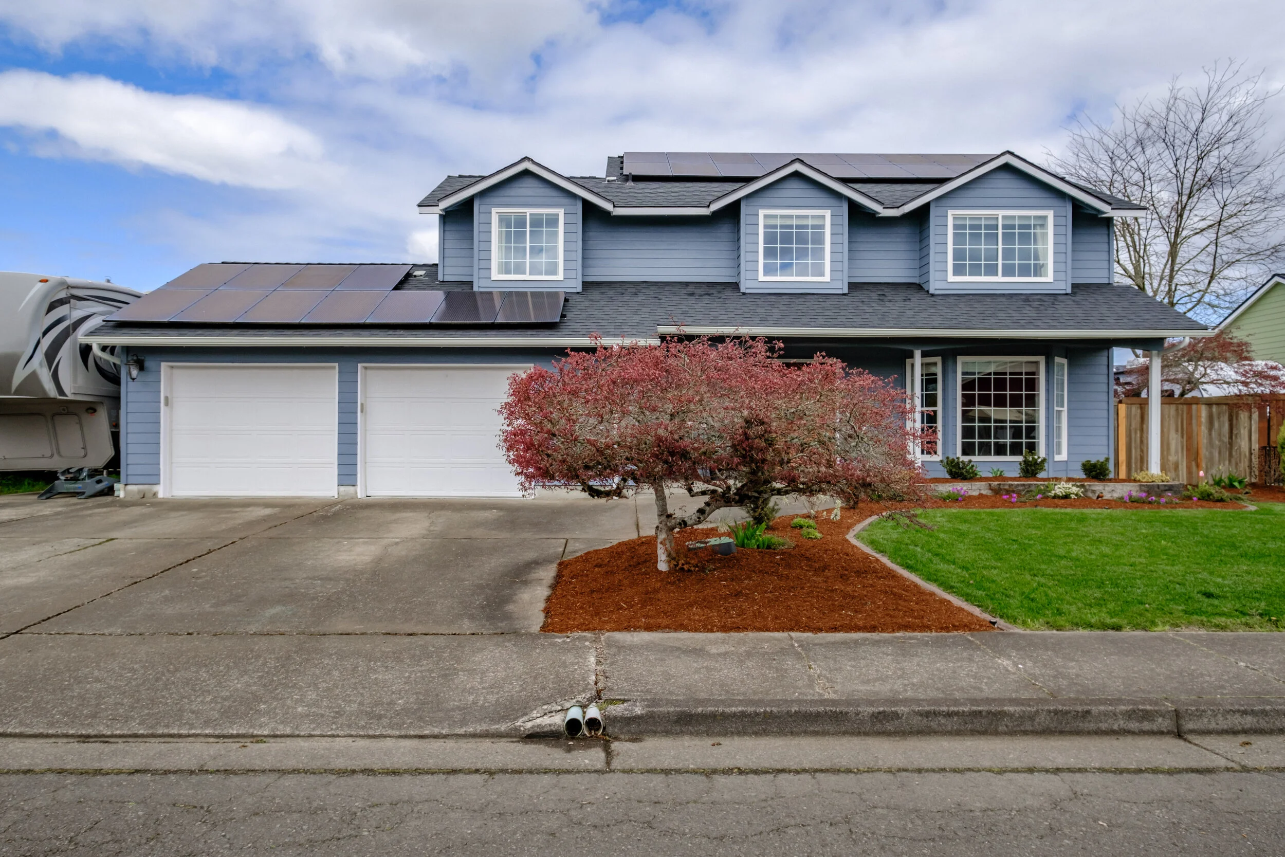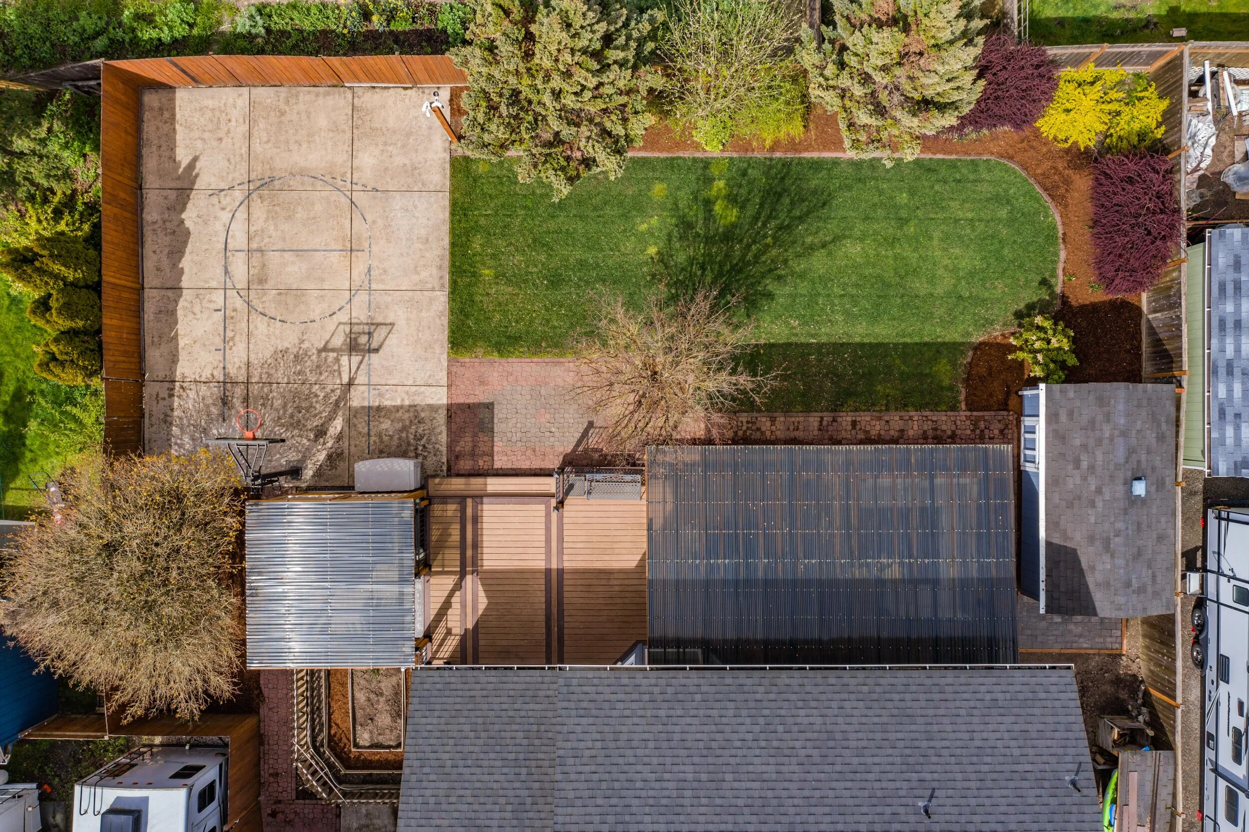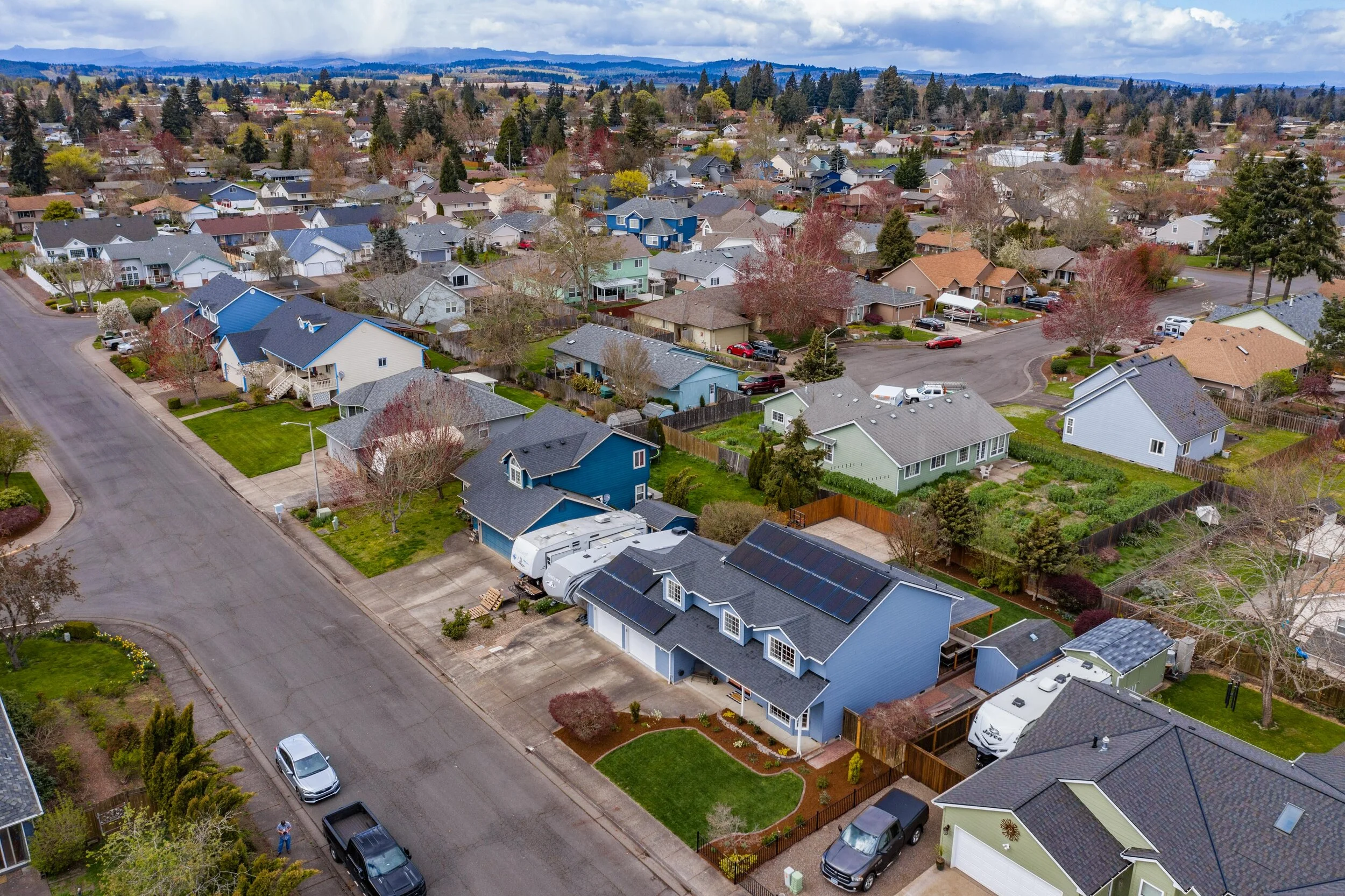 Upstairs, you will find four spacious bedrooms, with the option to connect the middle two rooms into one large suite. Master bedroom and ensuite reveal great natural light, dual closets, a new shower, and plenty of space to share. Upstairs hall bathroom and half bathroom next to foyer showcase marble countertops and elegant tile. Moving to the backyard there is more than 40 feet of deck space lending to an abundance of year-round outdoor living space. Other features include pergola for hot tub and BBQ, raised garden beds, underground sprinklers, half basketball court, 16x8 shed and wood storage! There is plenty of space to move, work and play in this home not to mention it is in a fantastic neighborhood. Some other updates include new interior and exterior paint, landscaping, new windows, 50-year roof, refinished cabinets, upgraded stairwell rails, solar panels, and a 1200 bottle temperature regulated wine cellar in the garage! Don’t forget there is RV parking too. Finally, this home is just minutes from Madrona Park, Western Oregon University, shopping, downtown, and HWY 99W for easy commute. Do not wait on this one!