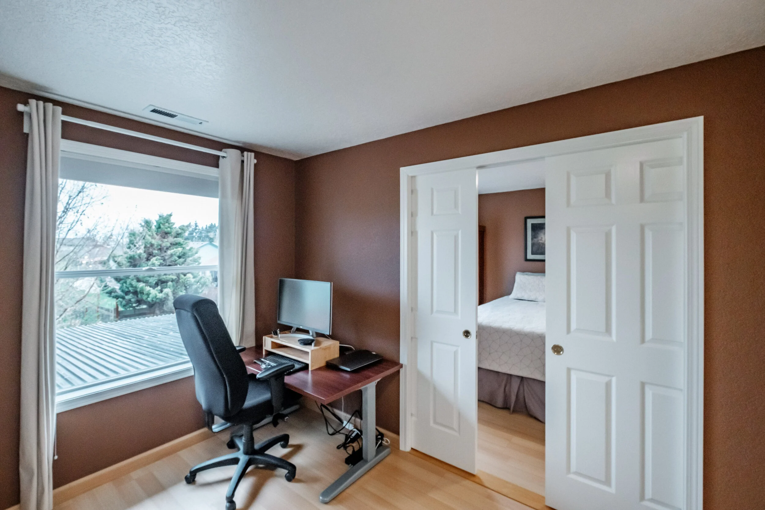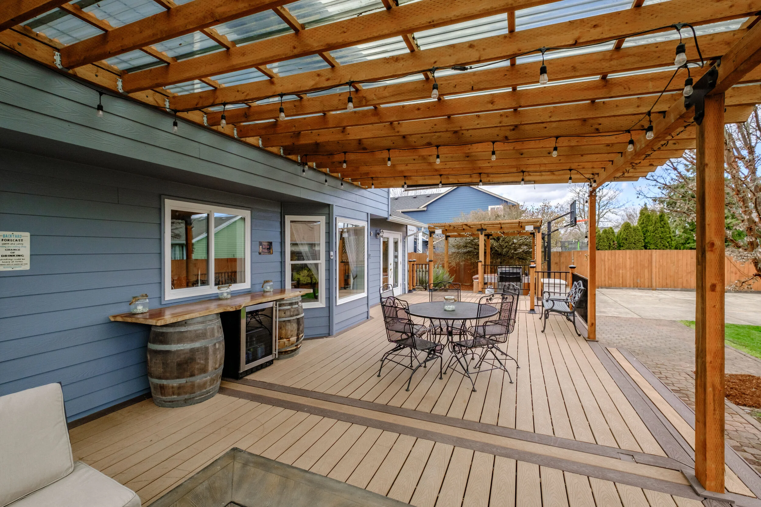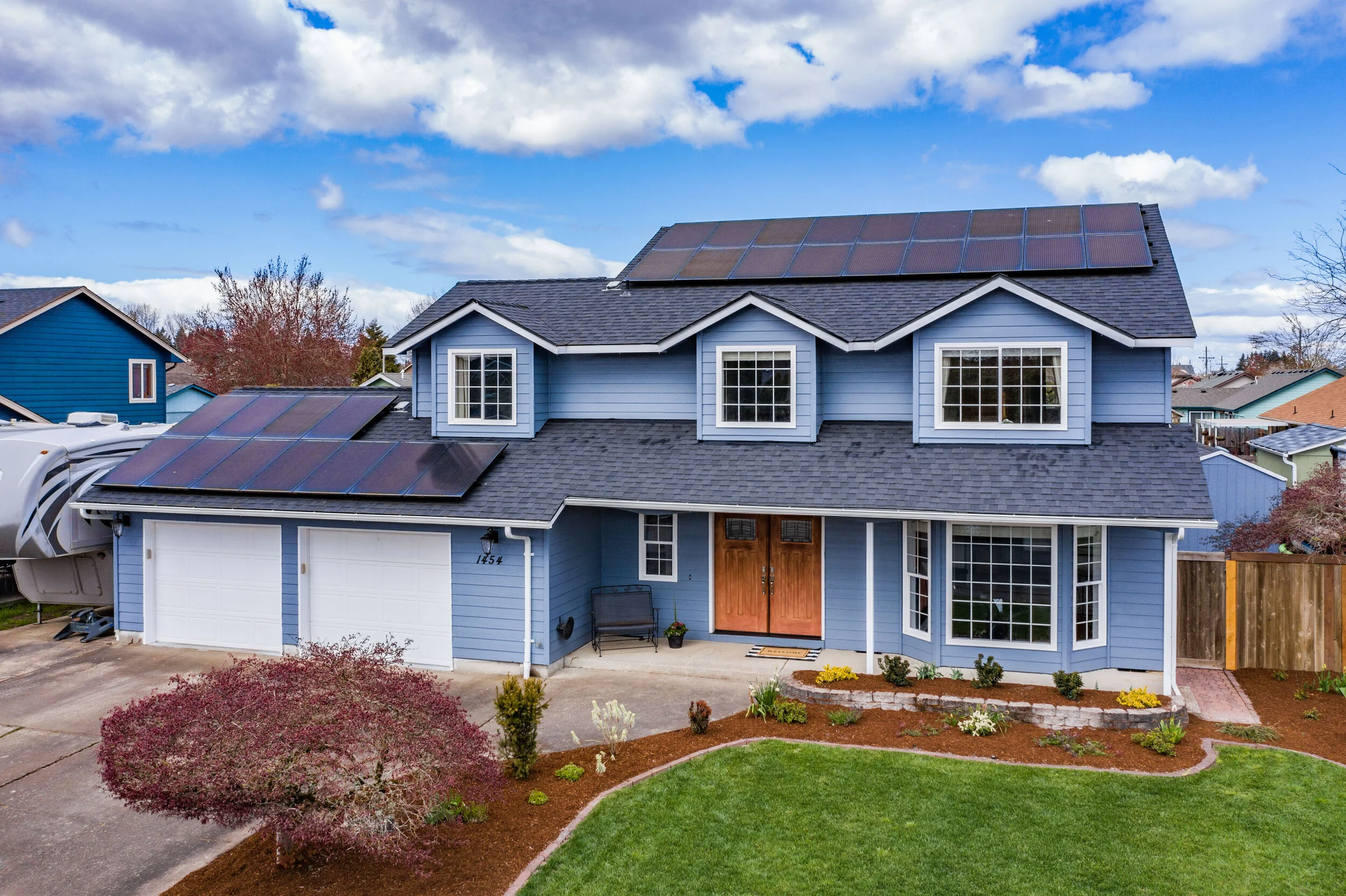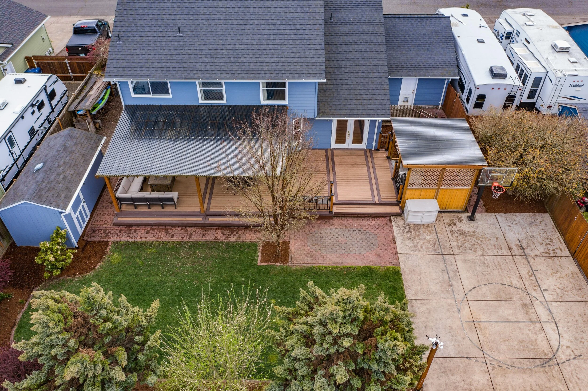Upstairs, you will find four spacious bedrooms, with the option to connect the middle two rooms into one large suite. Master bedroom and ensuite reveal great natural light, dual closets, a new shower, and plenty of space to share. Upstairs hall bathroom and half bathroom next to foyer showcase marble countertops and elegant tile. Moving to the backyard there is more than 40 feet of deck space lending to an abundance of year-round outdoor living space. Other features include pergola for hot tub and BBQ, raised garden beds, underground sprinklers, half basketball court, 16x8 shed and wood storage! There is plenty of space to move, work and play in this home not to mention it is in a fantastic neighborhood. Some other updates include new interior and exterior paint, landscaping, new windows, 50-year roof, refinished cabinets, upgraded stairwell rails, solar panels, and a 1200 bottle temperature regulated wine cellar in the garage! Don’t forget there is RV parking too. Finally, this home is just minutes from Madrona Park, Western Oregon University, shopping, downtown, and HWY 99W for easy commute. Do not wait on this one!