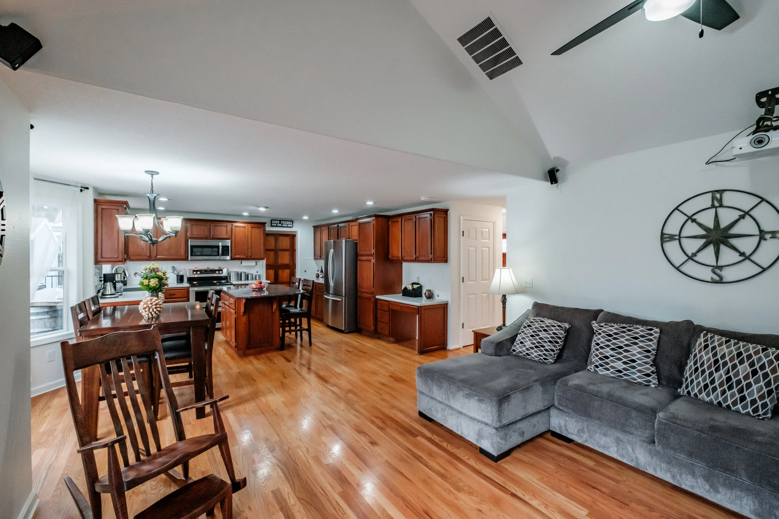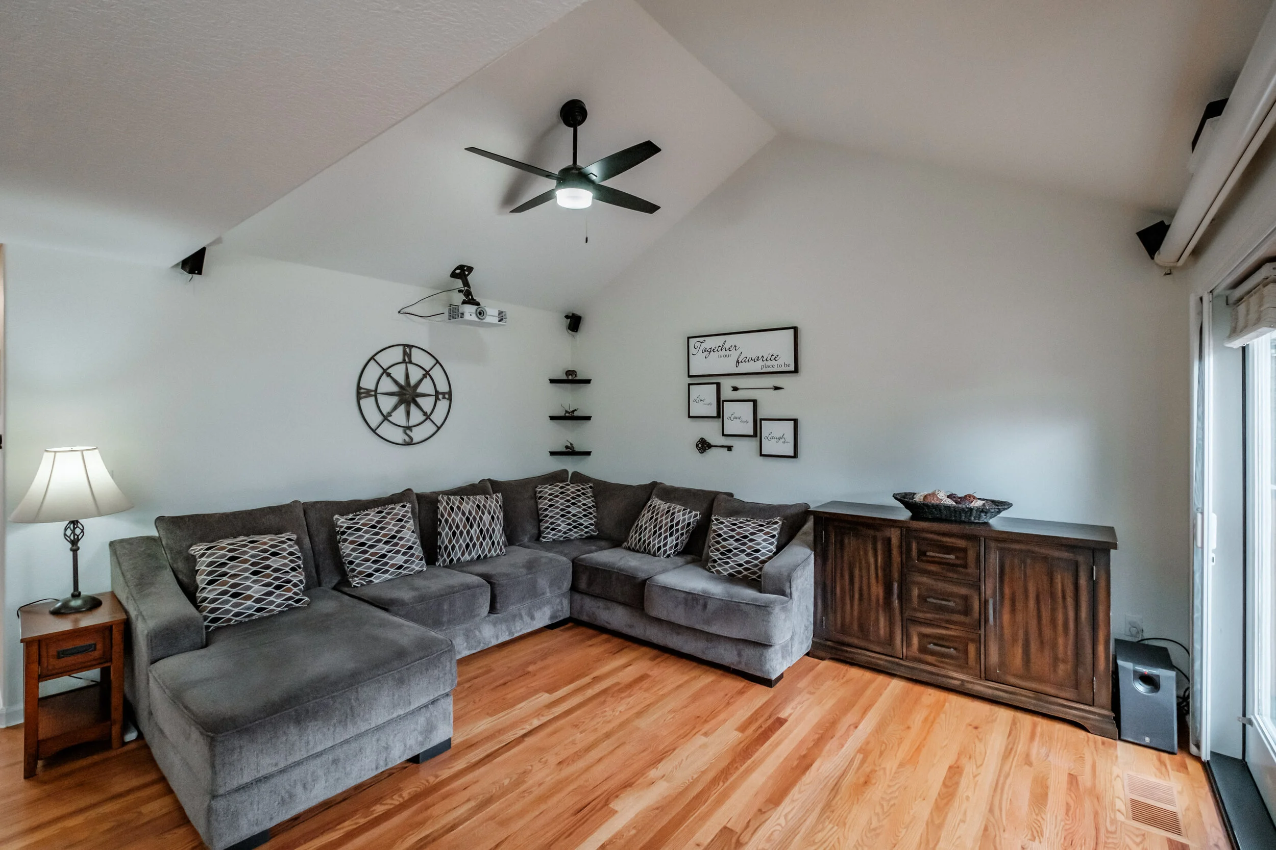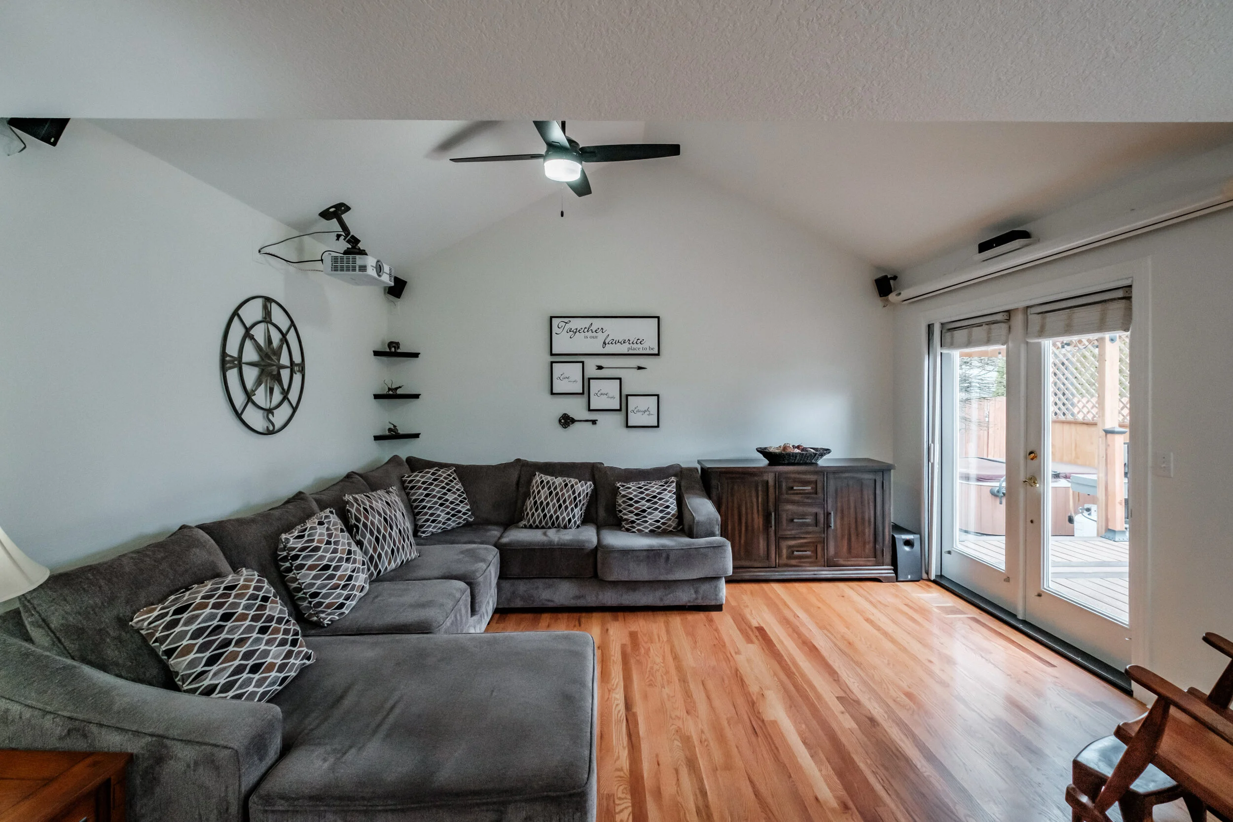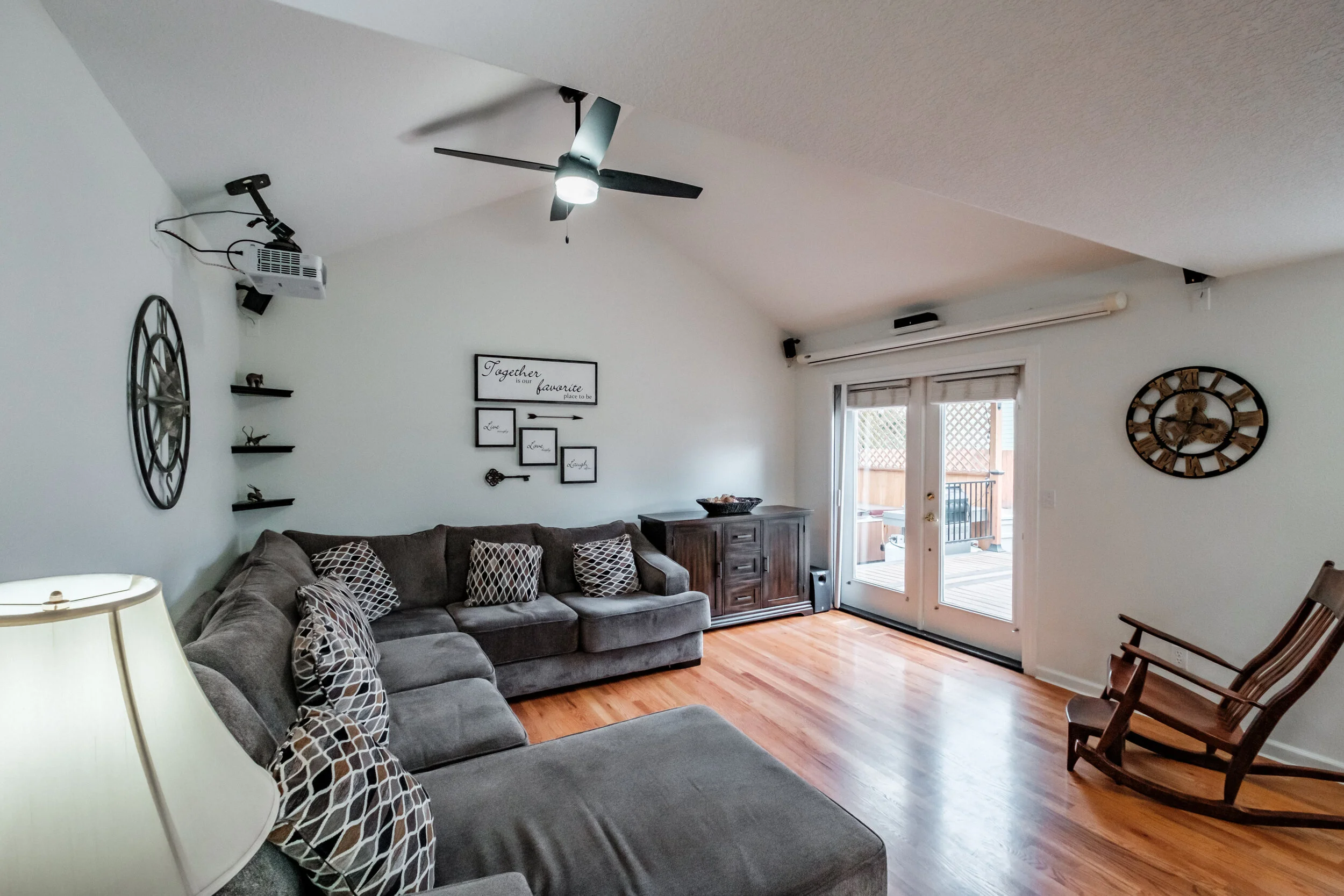 Projector and screen for theater style viewing in family room