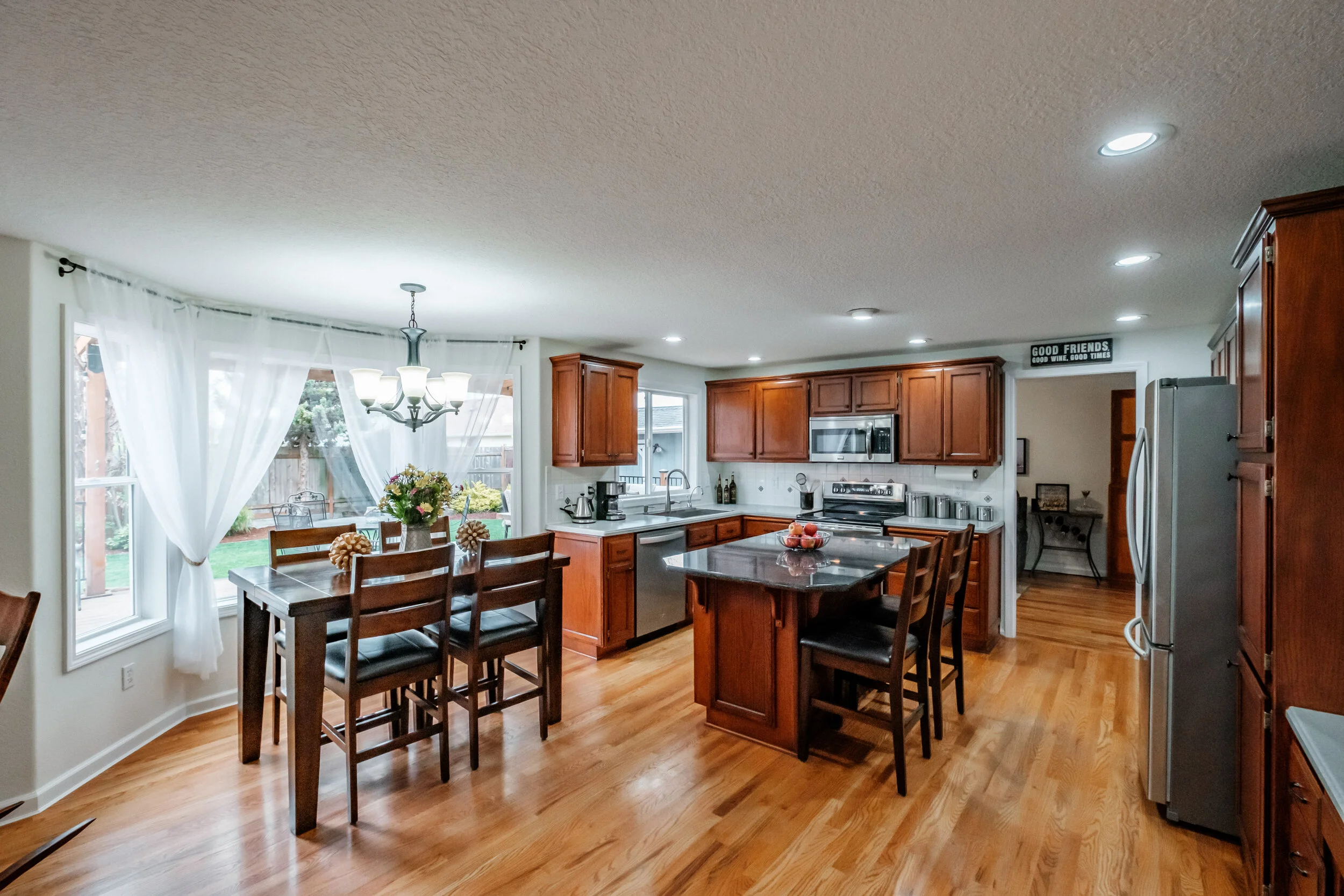 Informal eating space with bay windows