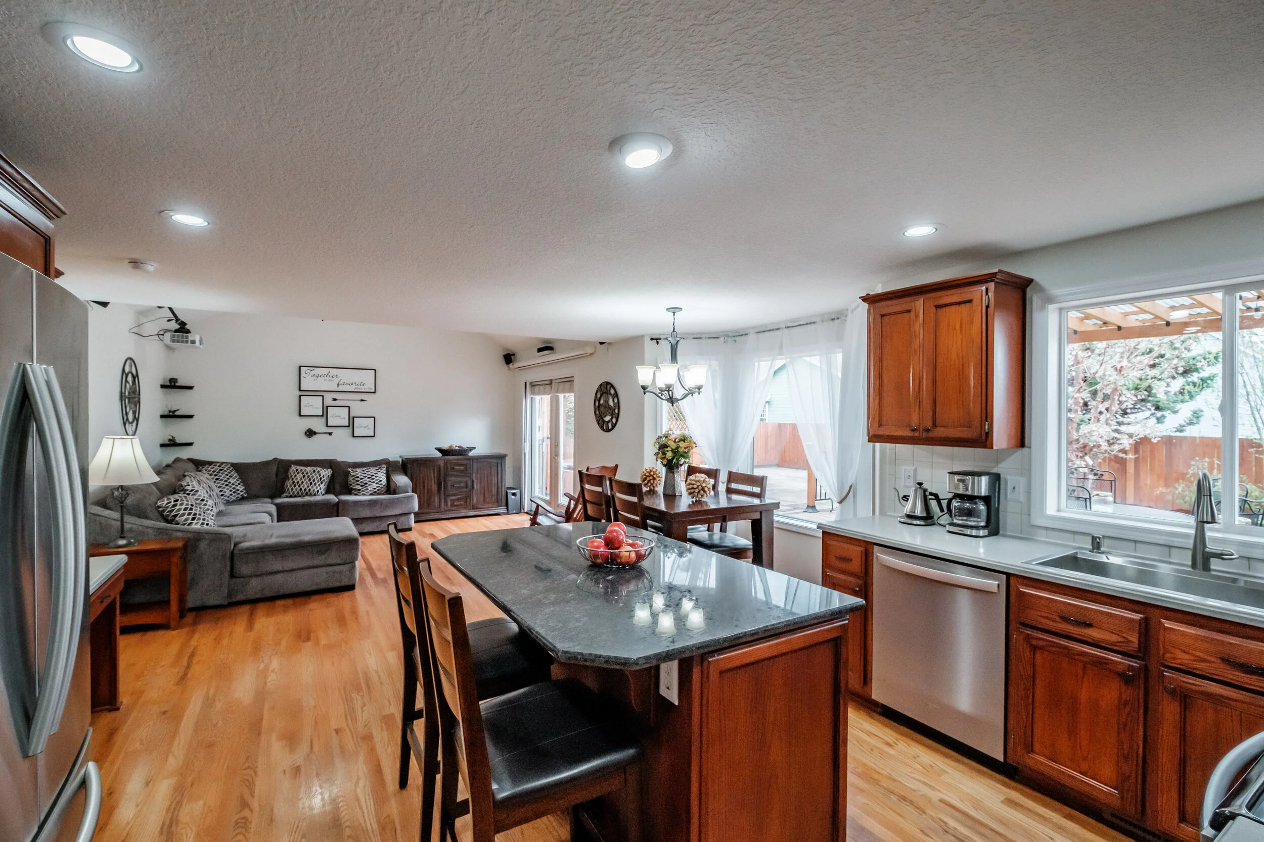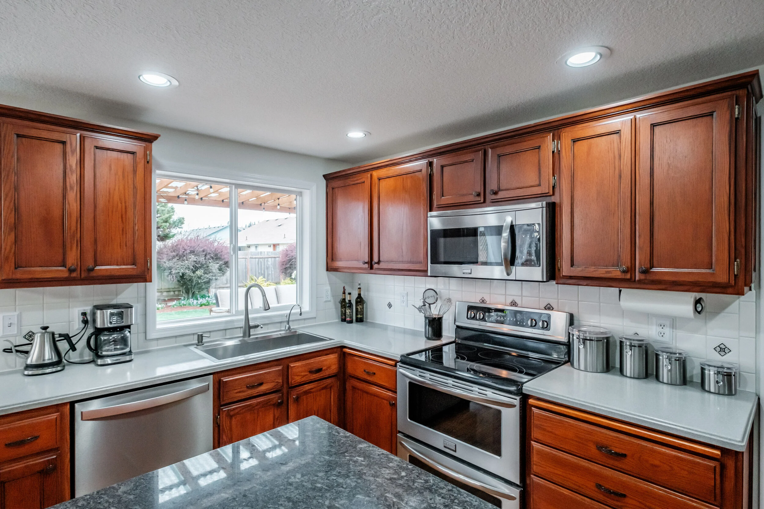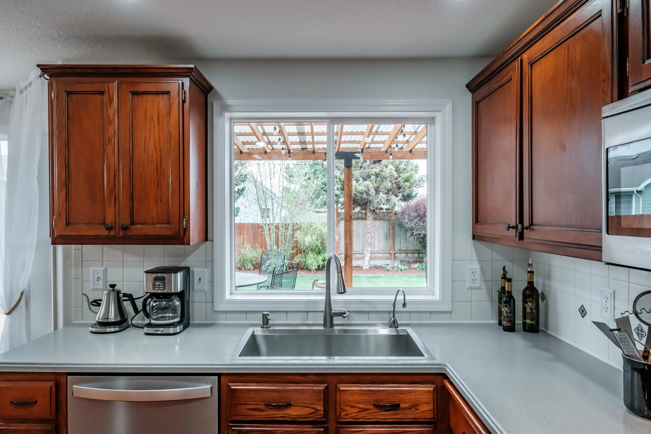 Window at sink overlooking back yard