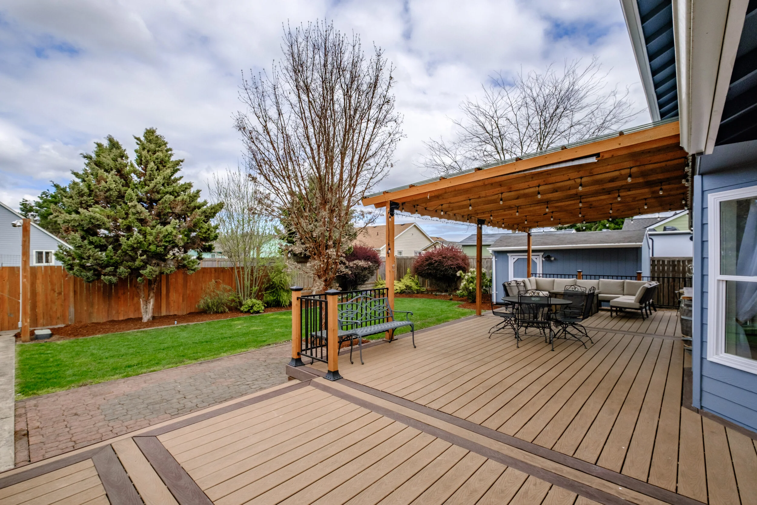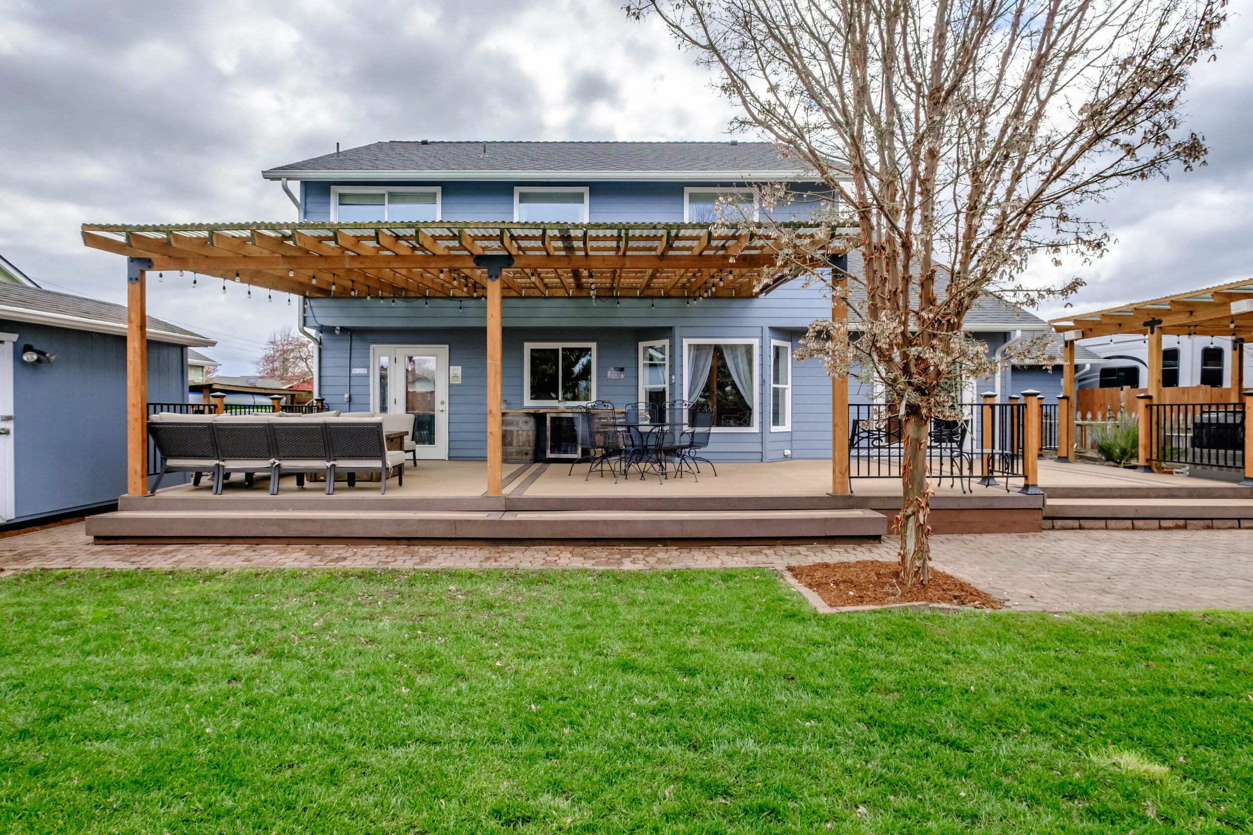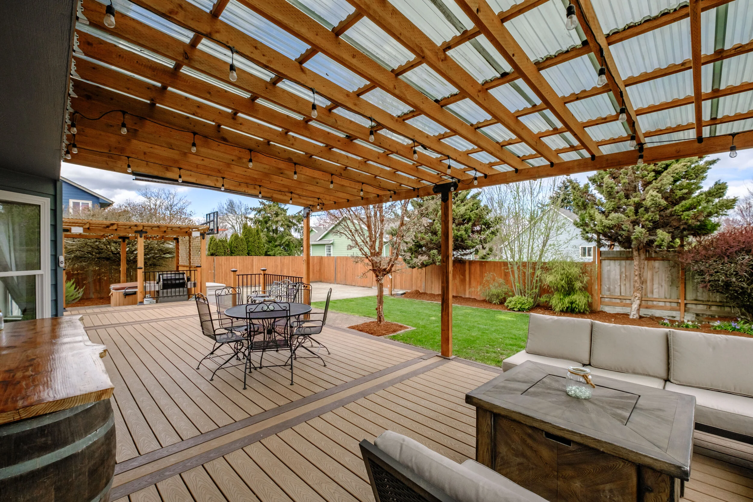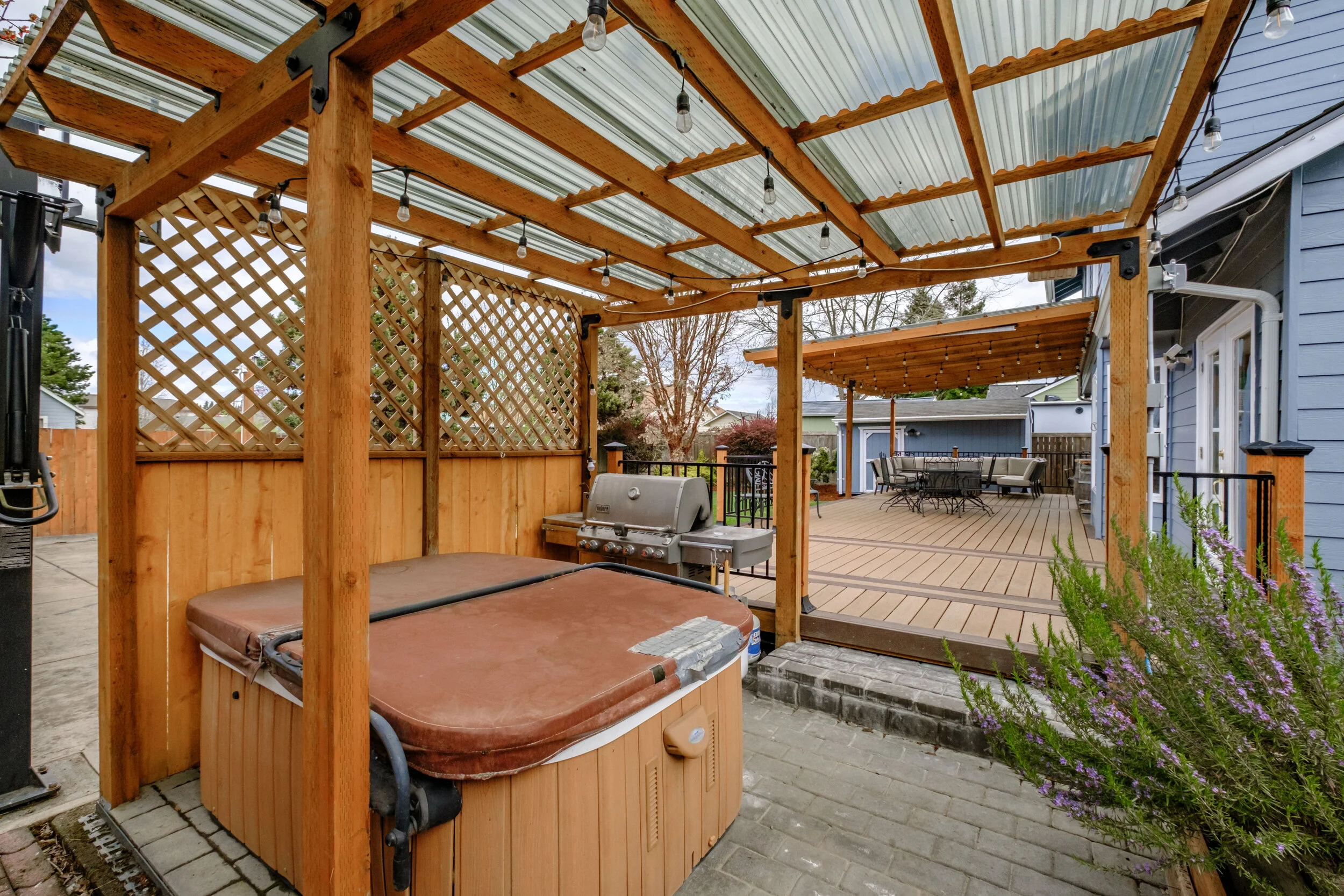 Pergola covered hot tub and BBQ stone paved area 11.5x10
